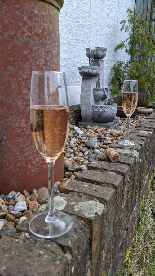 Saturday marked the date a wedding should have happened. We celebrated in the garden with a glass of champagne. We look forward to seeing the couple again and, of course, celebrating their real wedding when it is allowed to take place. I guess there will be a surge of wedding and other formal events once we are allowed to congregate in groups again.