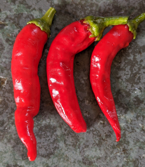 Back at home, the chillies are looking good, and the allotment is really beginning to produce for us. The weather is not particularly summery; it's windy.