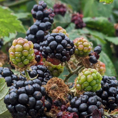 It's a good year for fruit (tomatoes included). The bushes are thick with blackberries, and we are picking raspberries from the allotment again.