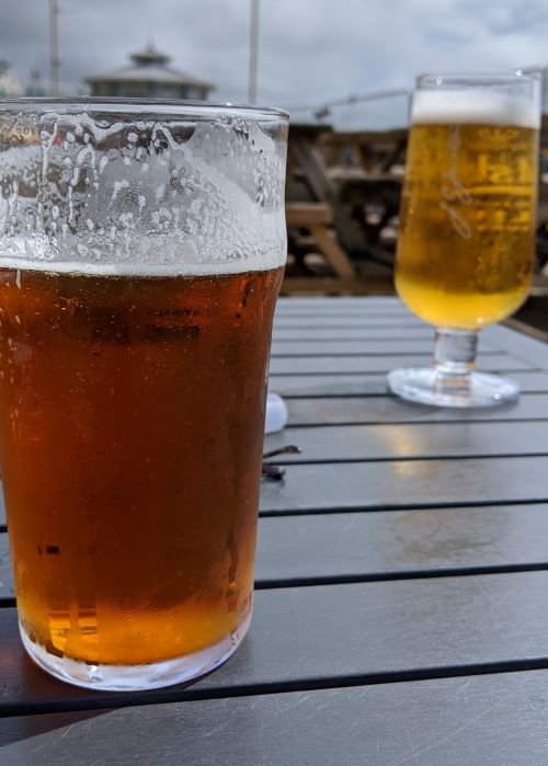 It was sunny and warm, having bought the things we needed (clothes and shoes), we had a beer on the sea front. The only beer we have bought since March was a takeaway from The Stag PH in Portslade. This time we were served as we sat at a table.