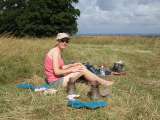 Then it rained. It continued to rain for quite some time, and it was hard. We had our lunch standing up under a dripping tree. Our coats were fine, but the water ran down our legs and in to our boots. Summer is great in Britain.